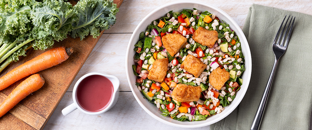 - To serve, place salad mixture into bowls and top evenly with Just Bare lightly breaded bites.