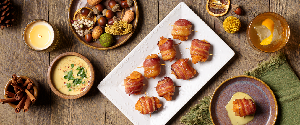 Paired With Maple Bacon Wrapped Lightly Breaded Bites