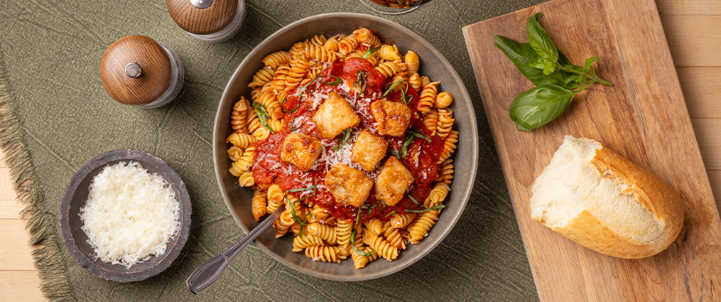 - Serve the chicken and sauce on top of pasta then garnish with parmesan cheese and black pepper.